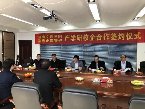 2020年3月,常德定海管樁有限公司與湖南文理學(xué)院簽訂產(chǎn)學(xué)研合作協(xié)議??偨?jīng)理陳吉果與學(xué)院領(lǐng)導(dǎo)現(xiàn)場(chǎng)簽約并授牌。